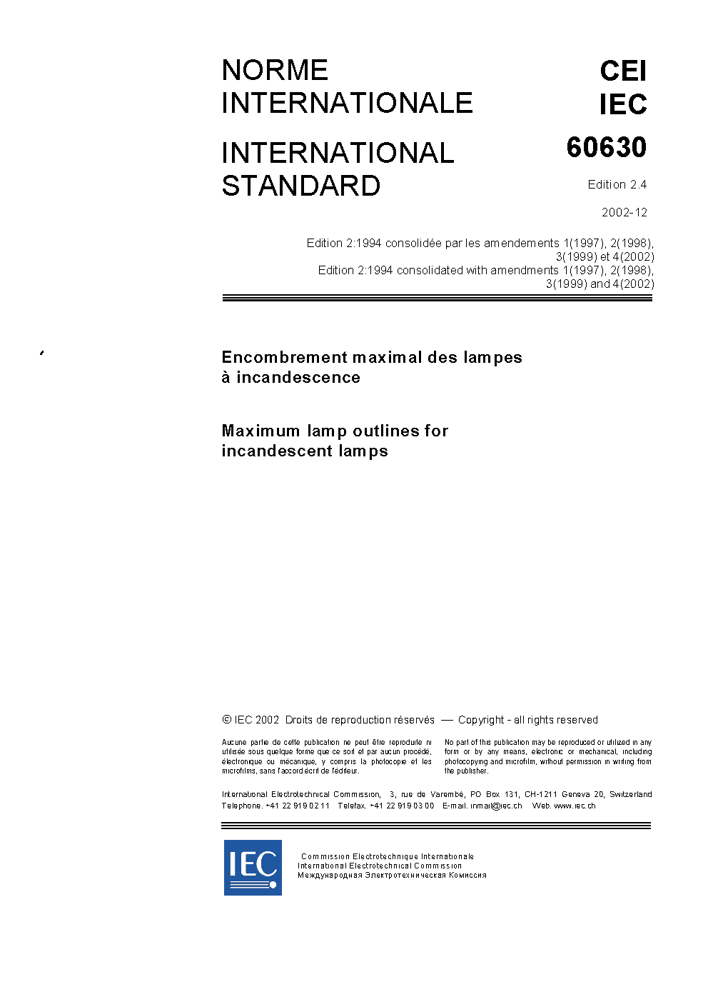 IEC 60630:1994/AMD7:2014 Amendment 7 - Maximum lamp outlines for incandescent lamps