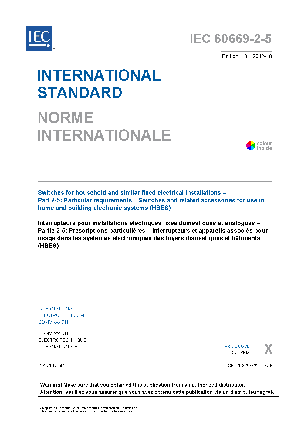 IEC 60669-2-5:2013 Switches for household and similar fixed electrical installations - Part 2-5: Particular requirements - Switches and related accessories for use in home and building electronic systems (HBES)