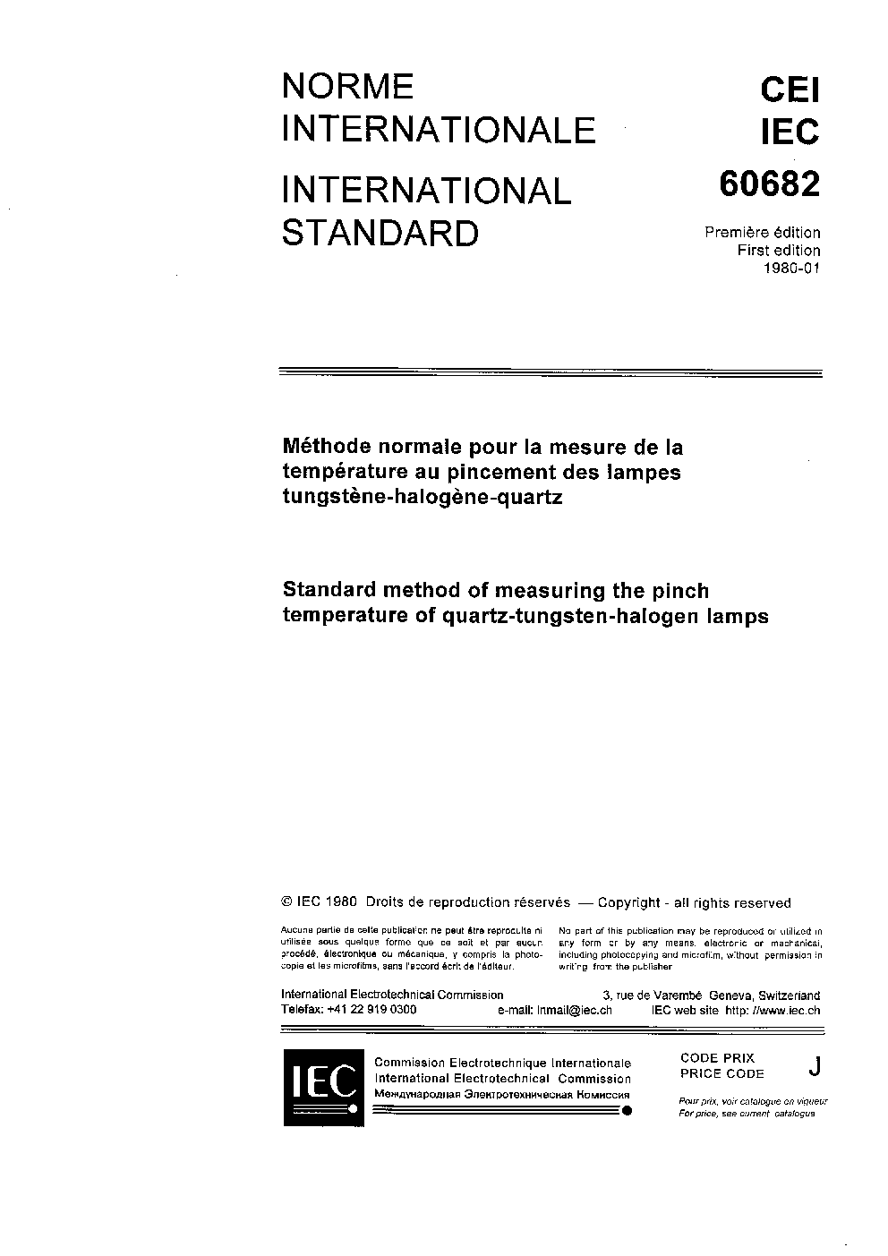 IEC 60682:1980 Standard method of measuring the pinch temperature of quartz-tungsten-halogen lamps