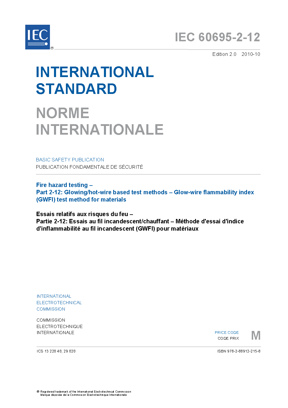 IEC 60695-2-12:2010/AMD1:2014 Amendment 1 - Fire hazard testing - Part 2-12: Glowing/hot-wire based test methods - Glow-wire flammability index (GWFI) test method for materials