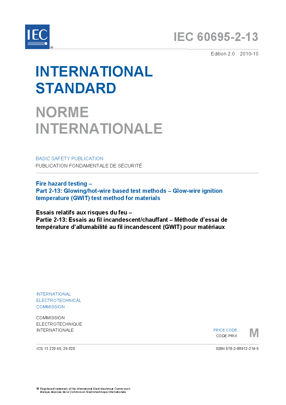 IEC 60695-2-13:2010/AMD1:2014 Amendment 1 - Fire hazard testing - Part 2-13: Glowing/hot-wire based test methods - Glow-wire ignition temperature (GWIT) test method for materials