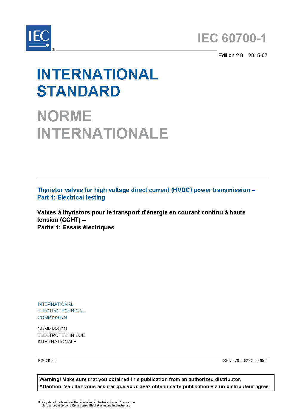 IEC 60700-1:2015/AMD1:2021 Amendment 1 - Thyristor valves for high voltage direct current (HVDC) power transmission - Part 1: Electrical testing