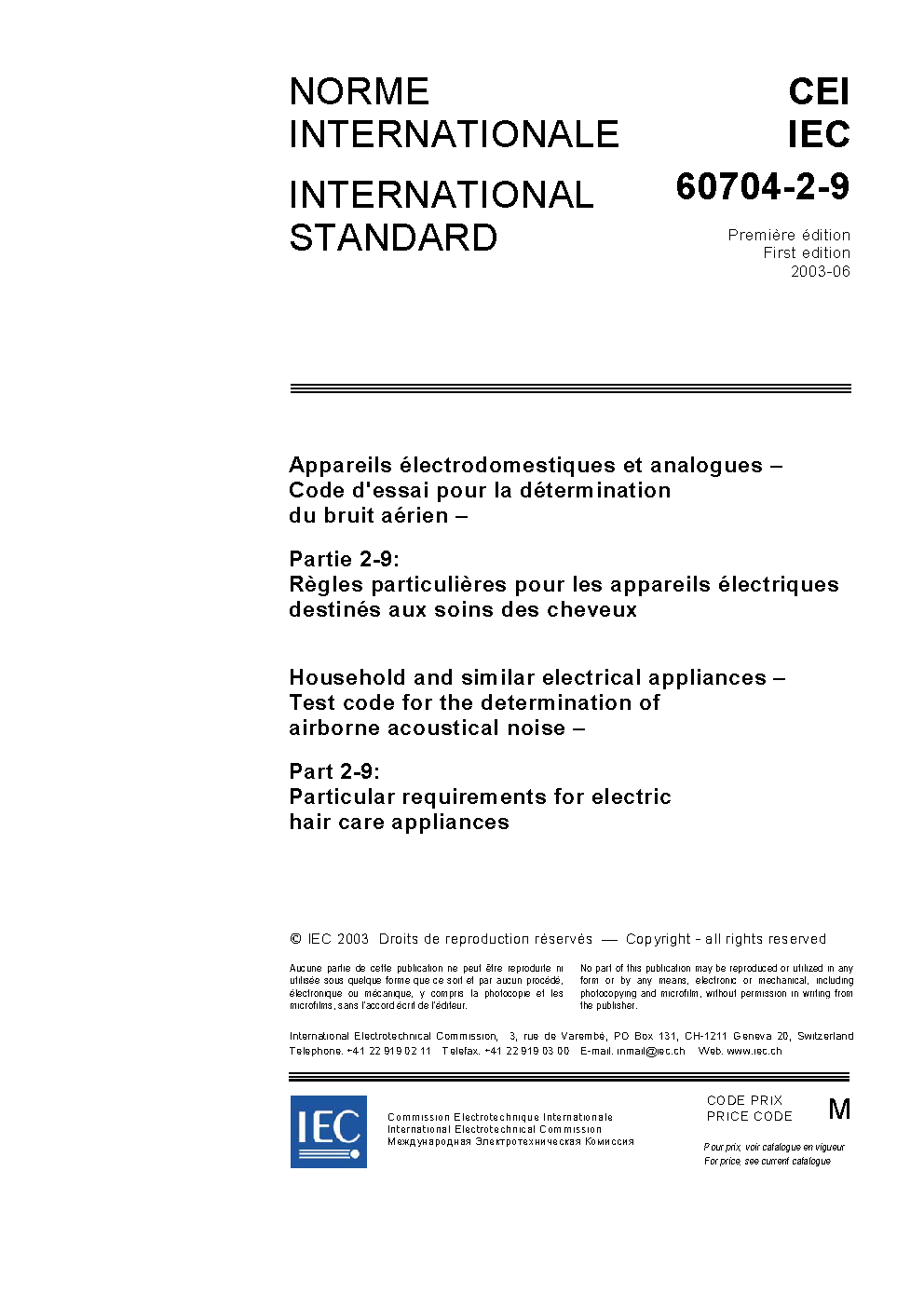 IEC 60704-2-9:2024 EXV-RLV Household and similar electrical appliances - Test code for the determination of airborne acoustical noise - Part 2-9: Particular requirements for electric hair care appliances