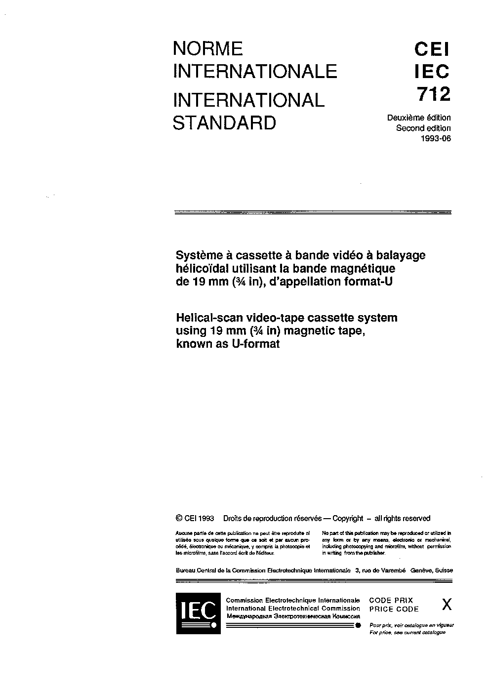IEC 60712:1993/AMD1:1993 Amendment 1 - Helical-scan video-tape cassette system using 19 mm (3/4 in) magnetic tape, known as U-format