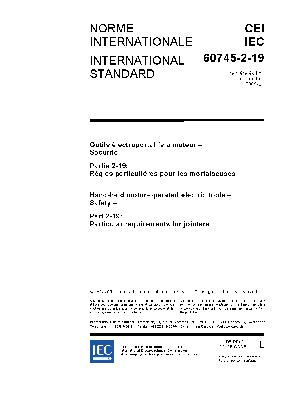 IEC 60745-2-19:2005 Hand-held motor-operated electric tools - Safety - Part 2-19: Particular requirements for jointers