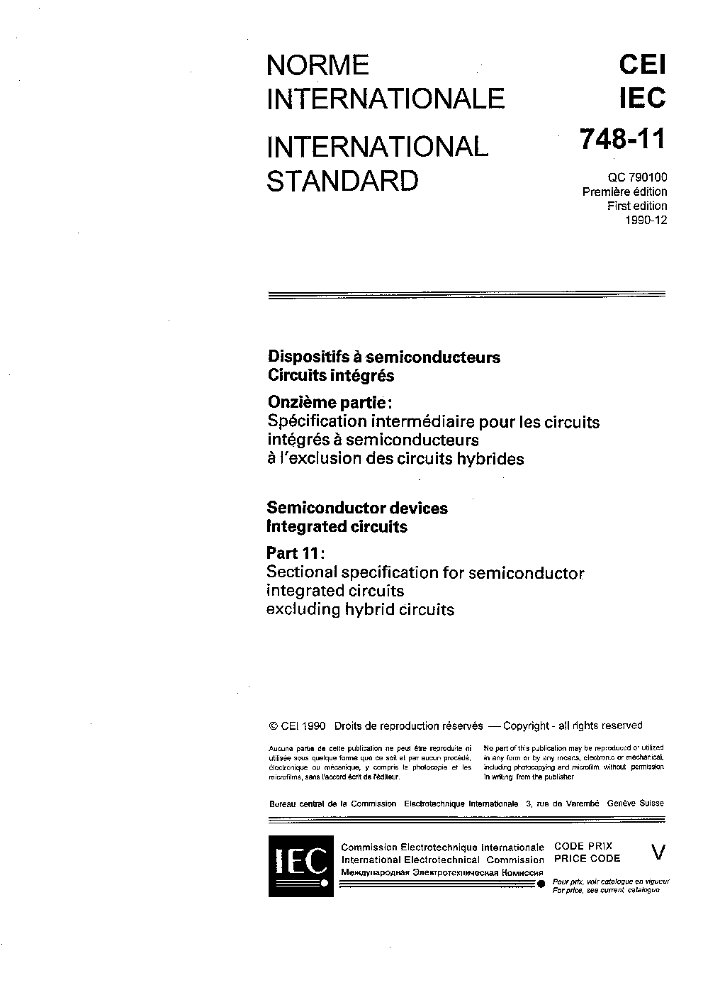 IEC 60748-11:1990/AMD1:1995 Amendment 1 - Semiconductor devices - Integrated circuits - Part 11: Sectional specification for semiconductor integrated circuits excluding hybrid circuits