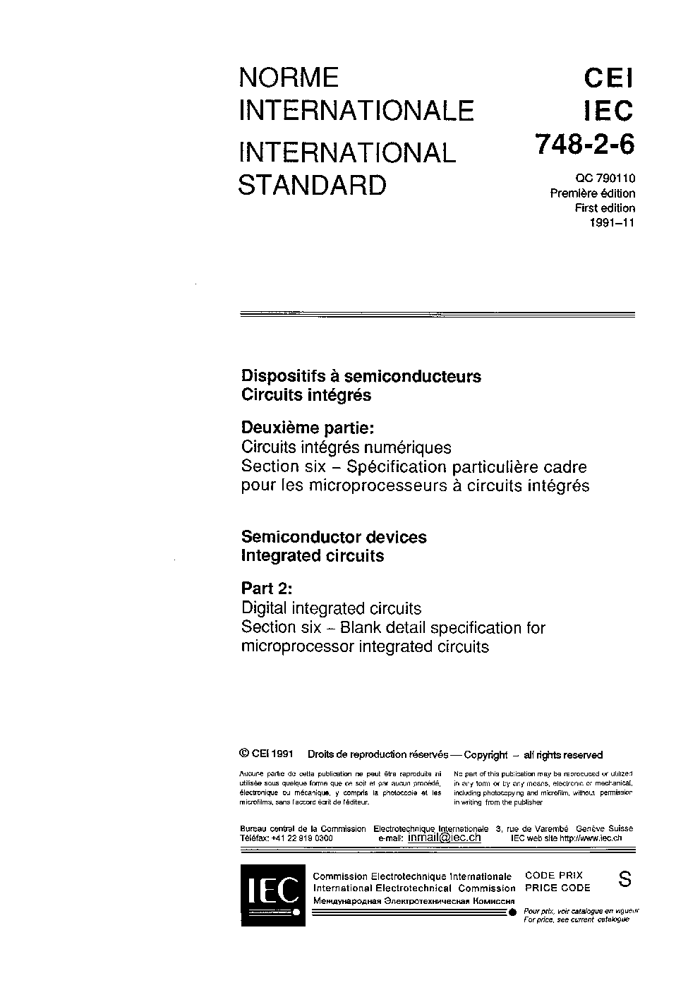 IEC 60748-2-6:1991 Semiconductor devices. Integrated circuits - Part 2: Digital integrated circuits - Section Six: Blank detail specification for microprocessor integrated circuits