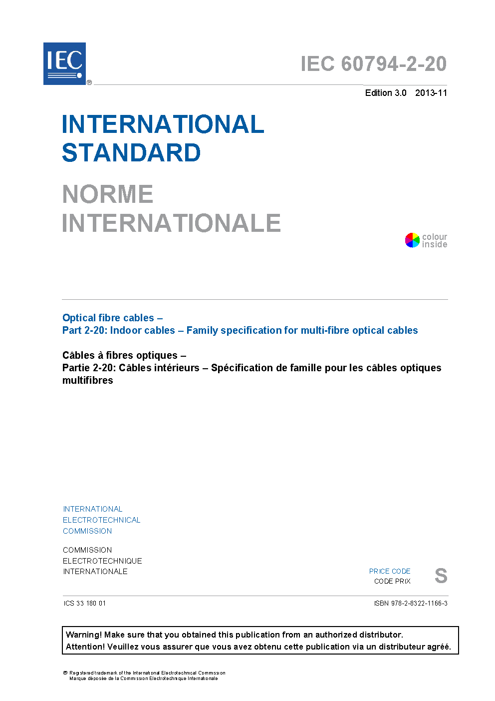 - reference to the new series IEC 60794-1-2X. Keywords: family specification covering multi-fibre optical cables for indoor use