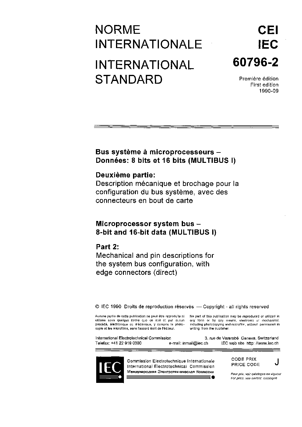 IEC 60796-2:1990 Microprocessor system bus - 8-bit and 16-bit data (MULTIBUS I) - Part 2: Mechanical and pin descriptions for the system BUS configuration, with edge connectors (direct)