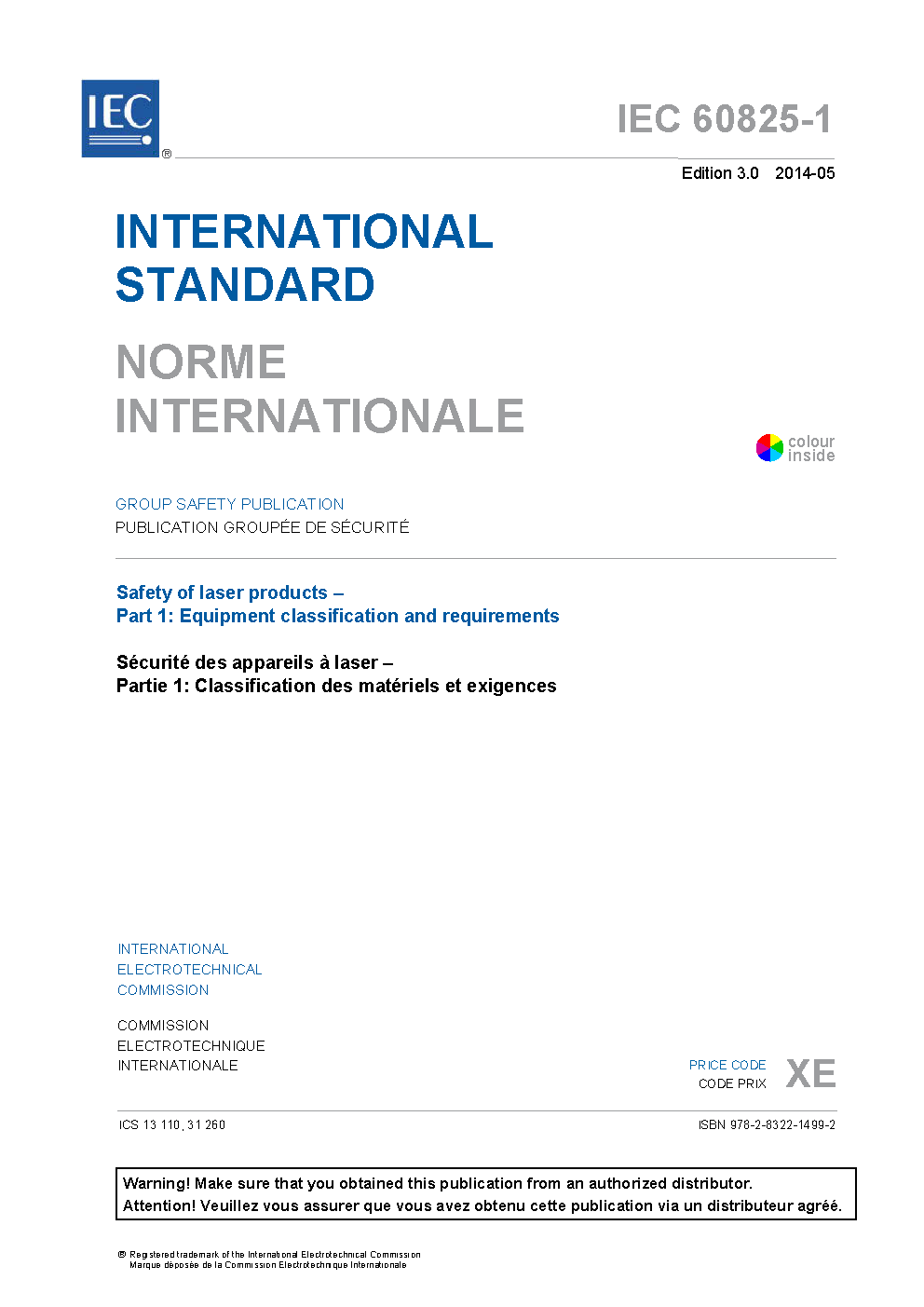 IEC 60825-1:2014 Safety of laser products - Part 1: Equipment classification and requirements