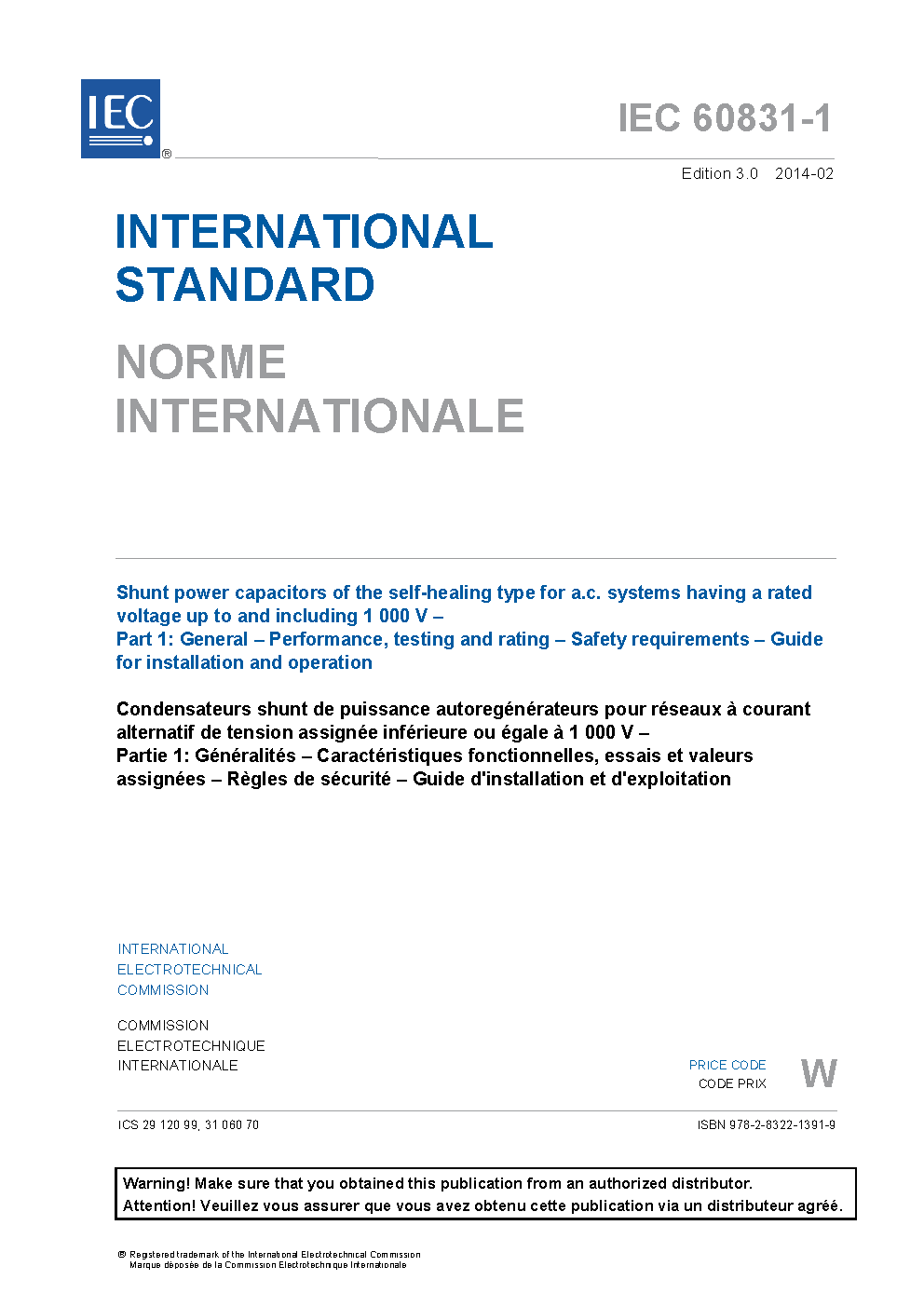 IEC 60831-1:2014/COR1:2014 Corrigendum 1 - Shunt power capacitors of the self-healing type for a.c. systems having a rated voltage up to and including 1 000 V - Part 1: General - Performance, testing and rating - Safety requirements - Guide for installation and operation