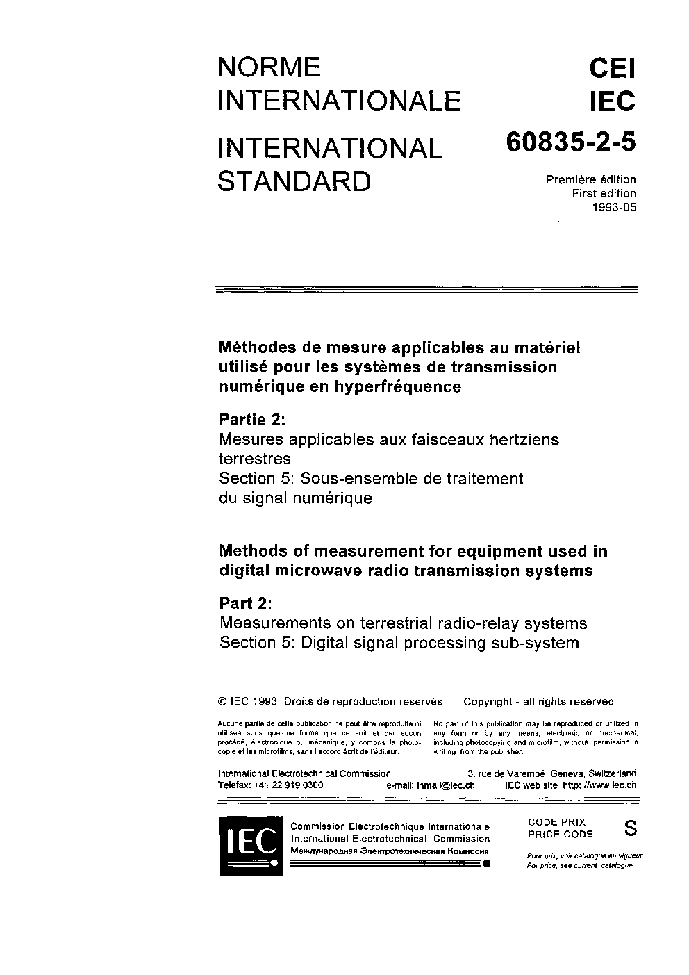 IEC 60835-2-5:1993 Methods of measurement for equipment used in digital microwave radio transmission systems - Part 2: Measurements on terrestrial radio-relay systems - Section 5: Digital signal processing sub-system