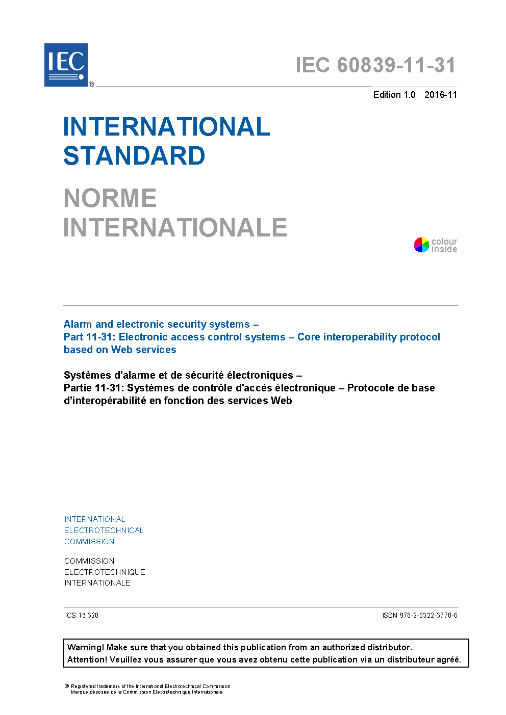 IEC 60839-11-31:2016 Alarm and electronic security systems - Part 11-31: Electronic access control systems - Core interoperability protocol based on Web services