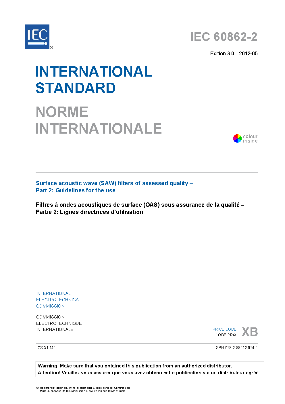 IEC 60862-2:2012 Surface acoustic wave (SAW) filters of assessed quality - Part 2: Guidelines for the use
