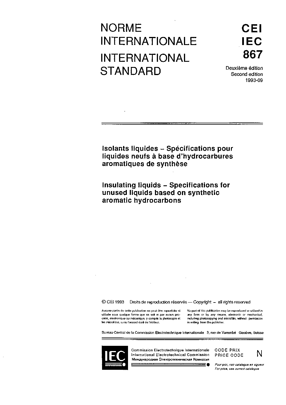IEC 60867:2022 Insulating liquids - Specifications for unused liquids based on synthetic aromatic hydrocarbons