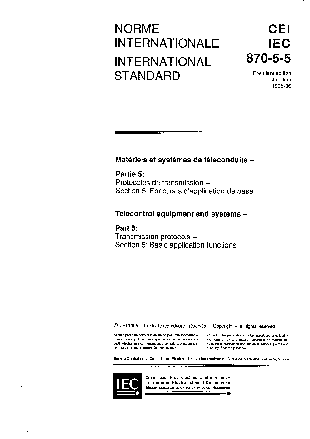 IEC 60870-5-5:1995 Telecontrol equipment and systems - Part 5: Transmission protocols - Section 5: Basic application functions