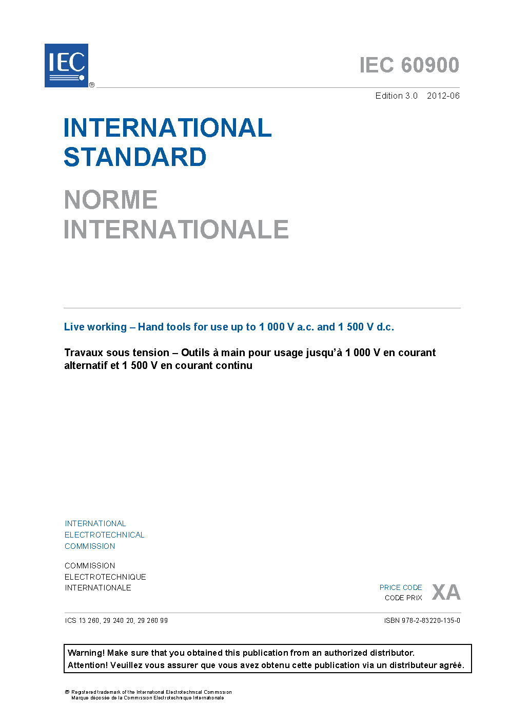 IEC 60900:2018 Live working - Hand tools for use up to 1 000 V AC and 1 500 V DC