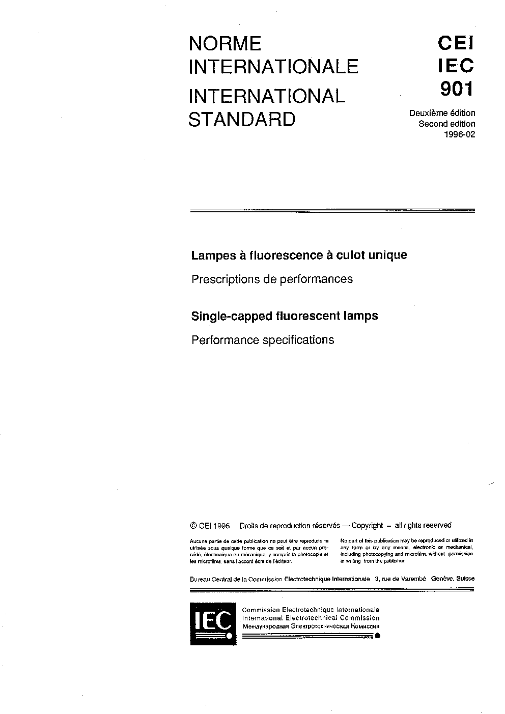 IEC 60901:1996 Single-capped fluorescent lamps - Performance specifications