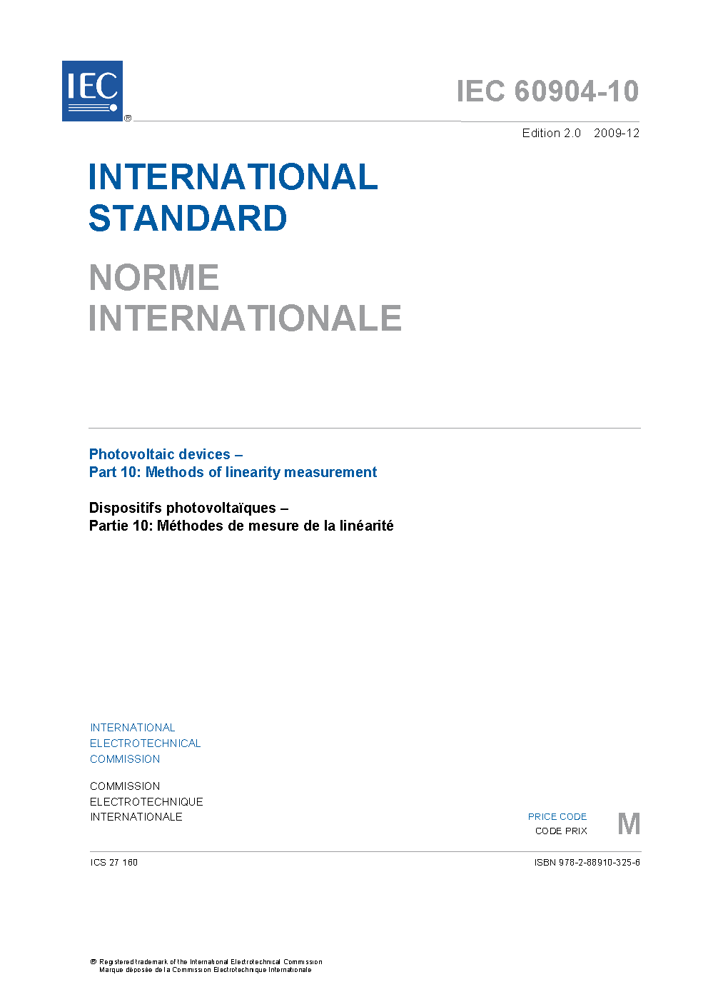 IEC 60904-10:2020 Photovoltaic devices - Part 10: Methods of linear dependence and linearity measurements