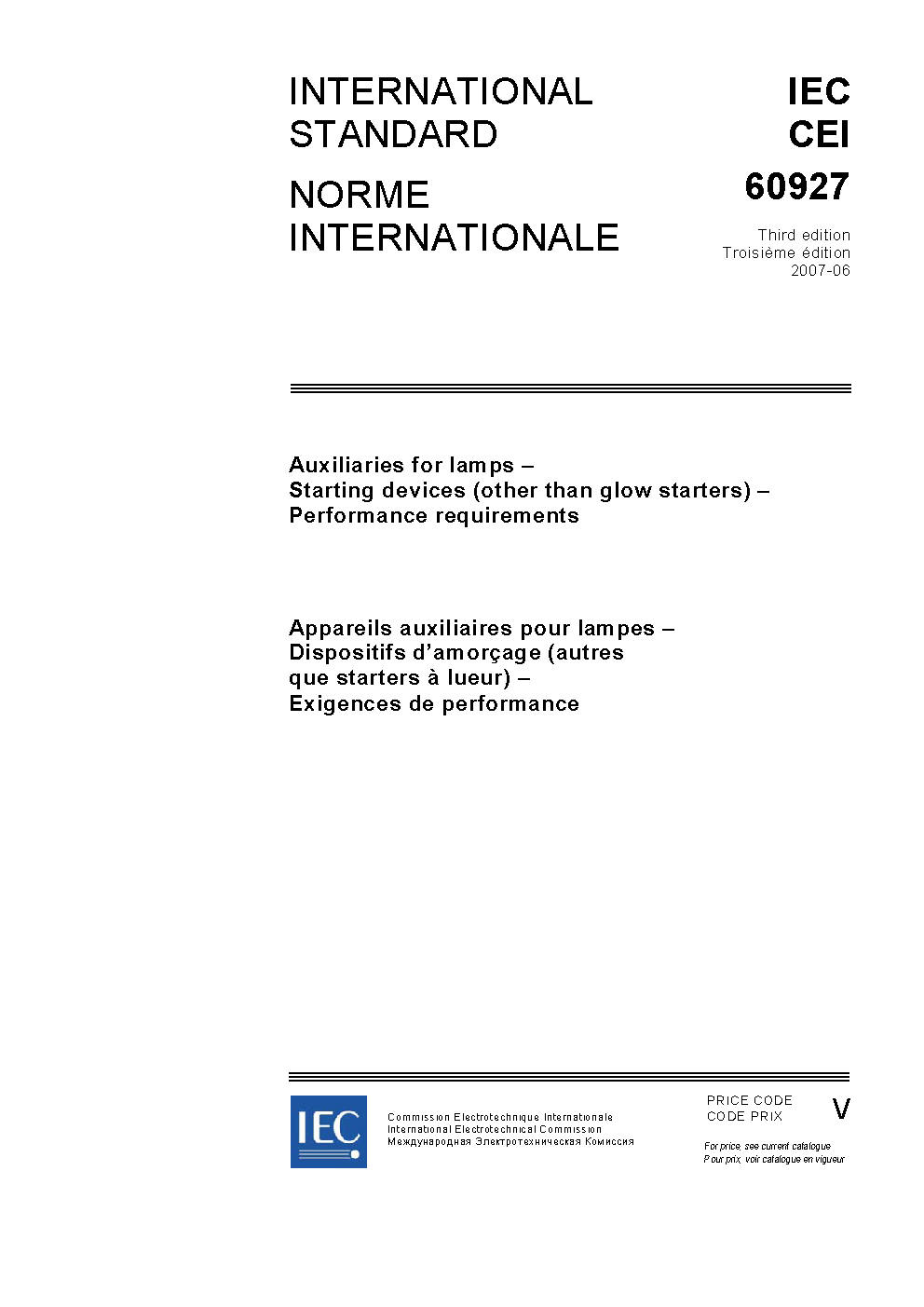 IEC 60927:2007/AMD1:2013 Amendment 1 - Auxiliaries for lamps - Starting devices (other than glow starters) - Performance requirements