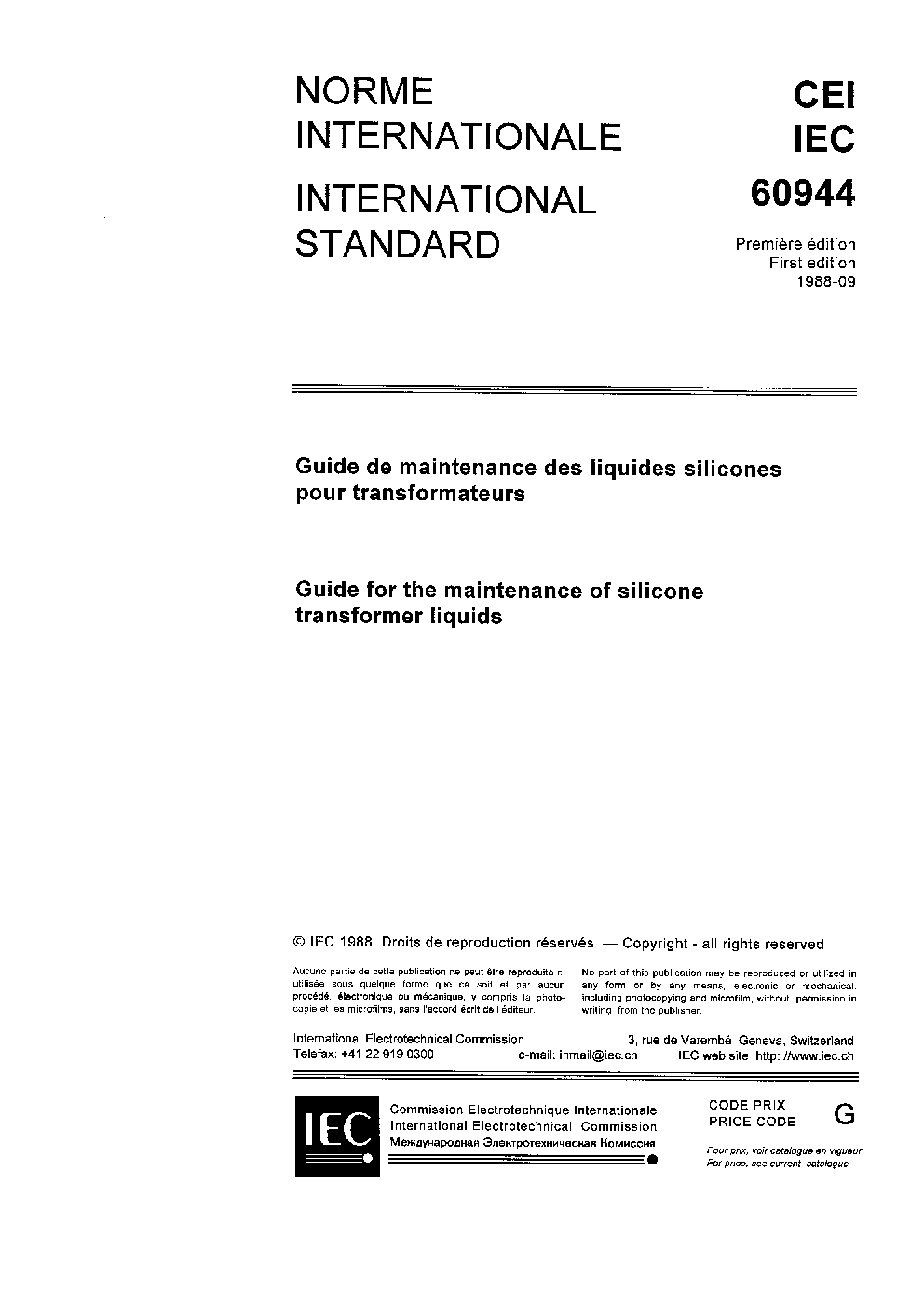 IEC 60944:1988 Guide for the maintenance of silicone transformer liquids