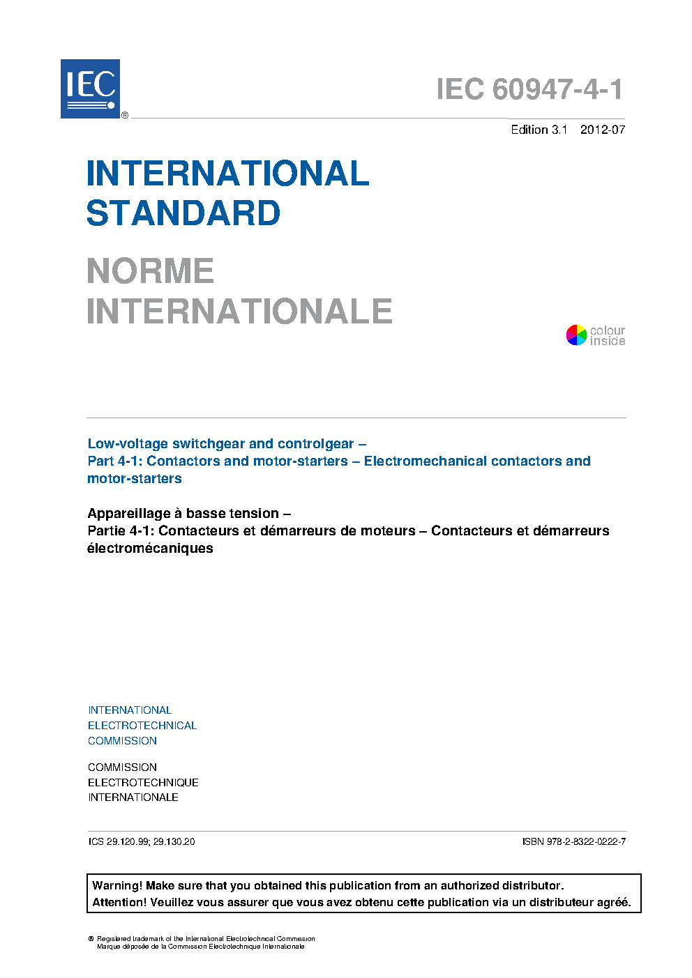 IEC 60947-4-1:2018 Low-voltage switchgear and controlgear - Part 4-1: Contactors and motor-starters - Electromechanical contactors and motor-starters