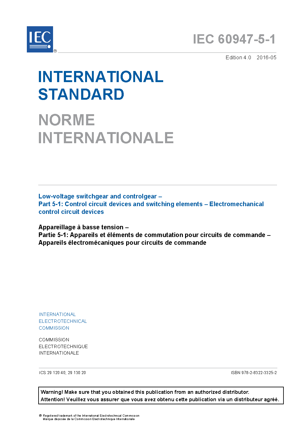 IEC 60947-5-1:2024 Low-voltage switchgear and controlgear - Part 5-1: Control circuit devices and switching elements - Electromechanical control circuit devices