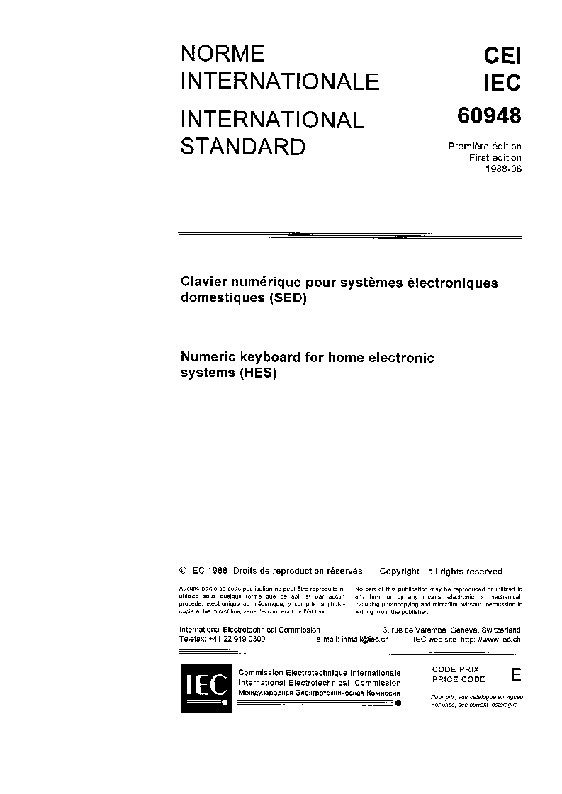 IEC 60948:1988 Numeric keyboard for home electronic systems (HES)