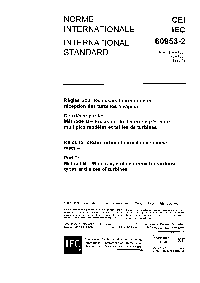IEC 60953-2:1990 Rules for steam turbine thermal acceptance tests. Part 2: Method B - Wide range of accuracy for various types and sizes of turbines