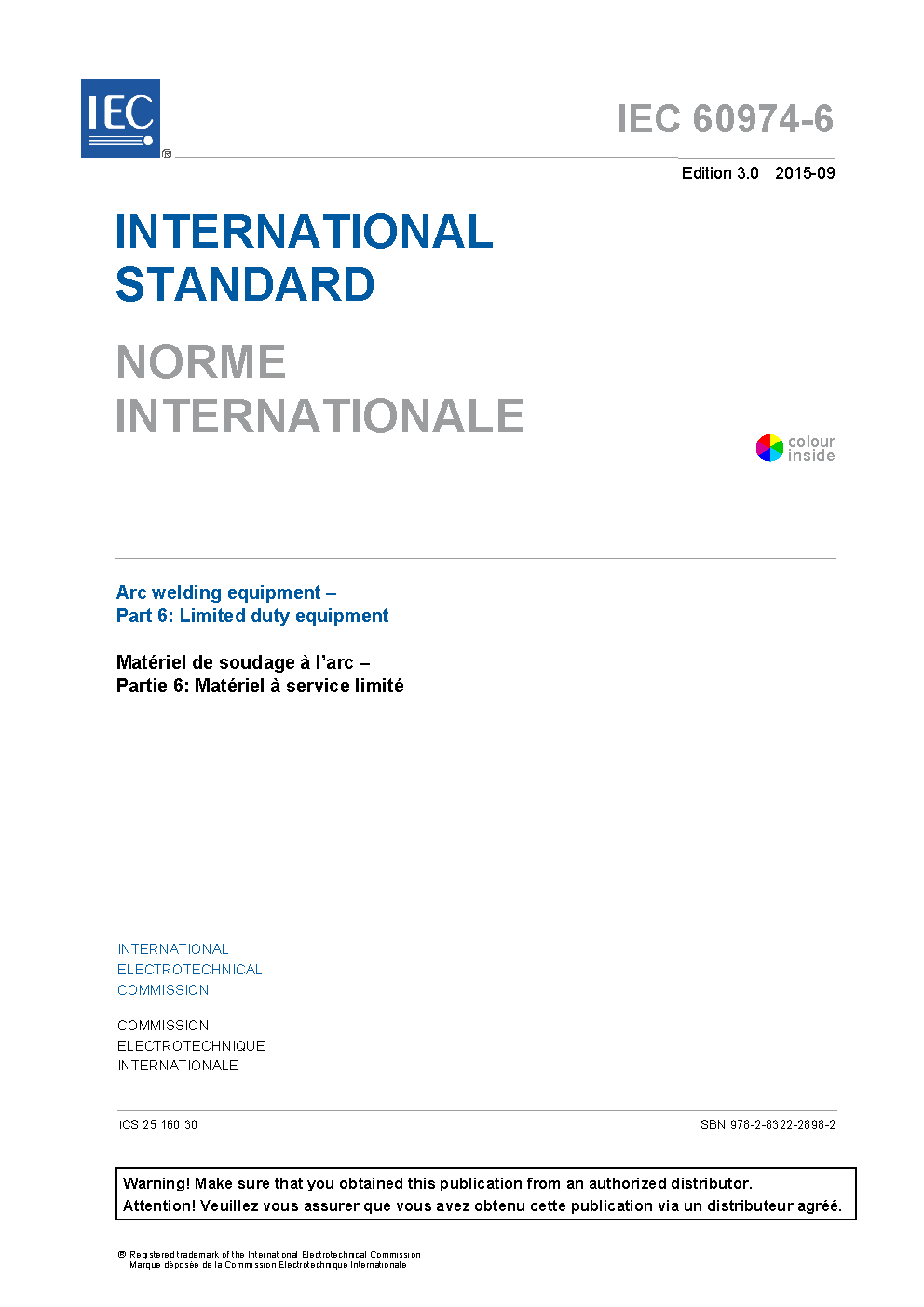 IEC 60974-6:2015 Arc welding equipment - Part 6: Limited duty equipment