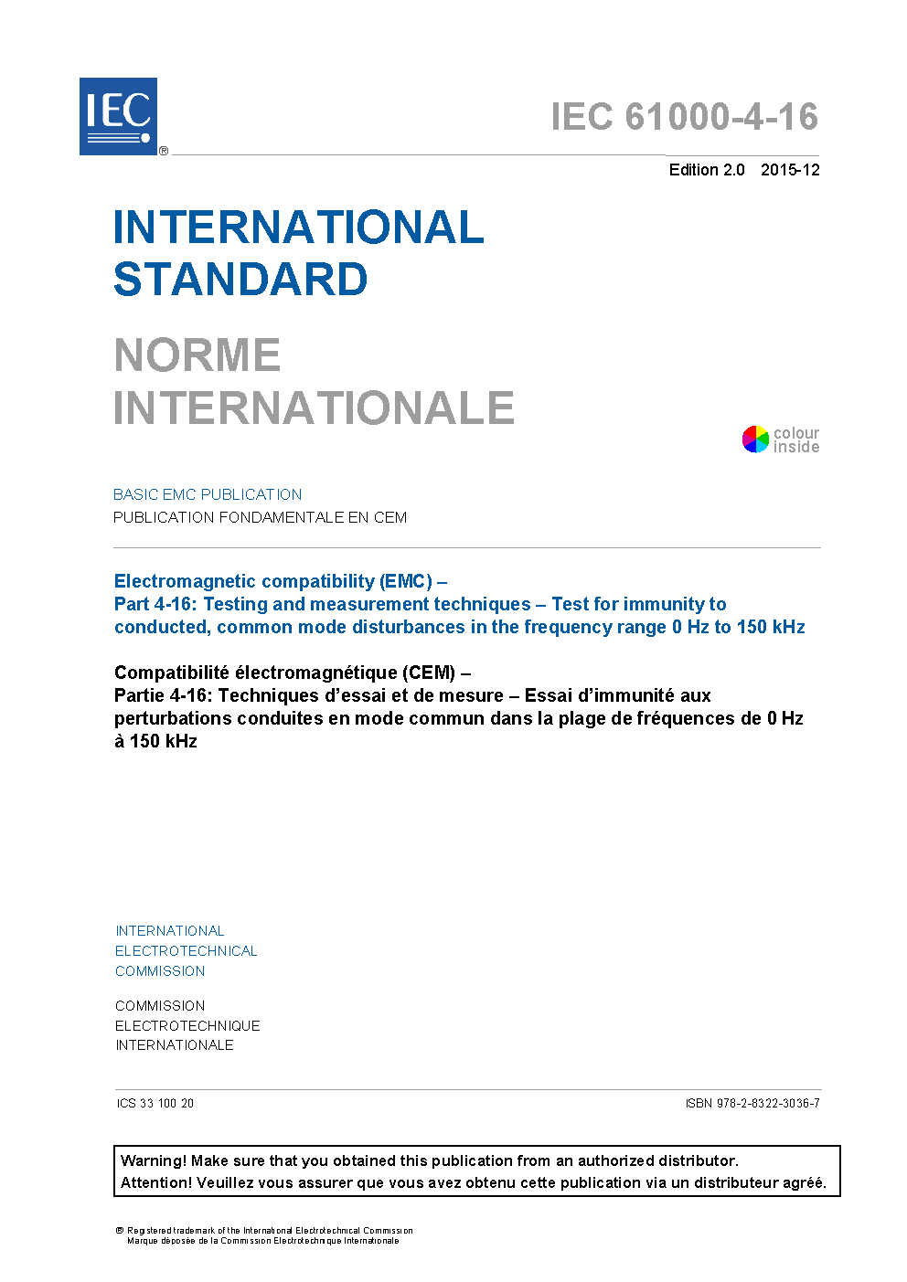 IEC 61000-4-16:1998/AMD2:2009 Amendment 2 - Electromagnetic compatibility (EMC) - Part 4-16: Testing and measurement techniques - Test for immunity to conducted, common mode disturbances in the frequency range 0 Hz to 150 kHz