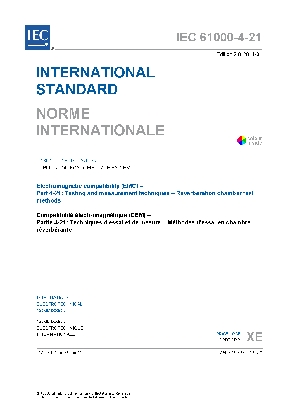 IEC 61000-4-21:2011 Electromagnetic compatibility (EMC) - Part 4-21: Testing and measurement techniques - Reverberation chamber test methods