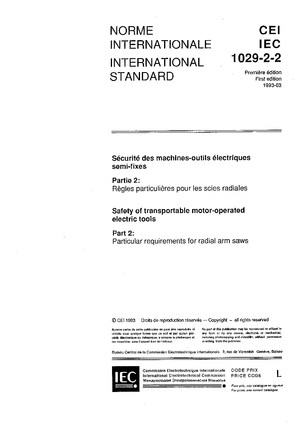 IEC 61029-2-2:1993 Safety of transportable motor-operated electric tools - Part 2: Particular requirements for radial arm saws