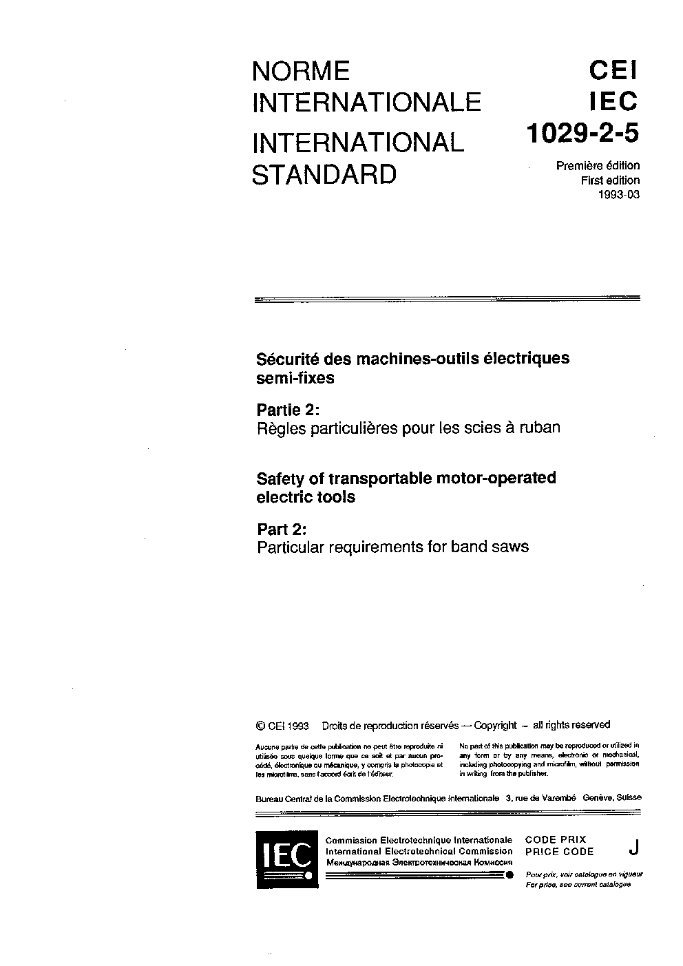 IEC 61029-2-5:1993/AMD1:2001 Amendment 1 - Safety of transportable motor-operated electric tools - Part 2: Particular requirements for band saws