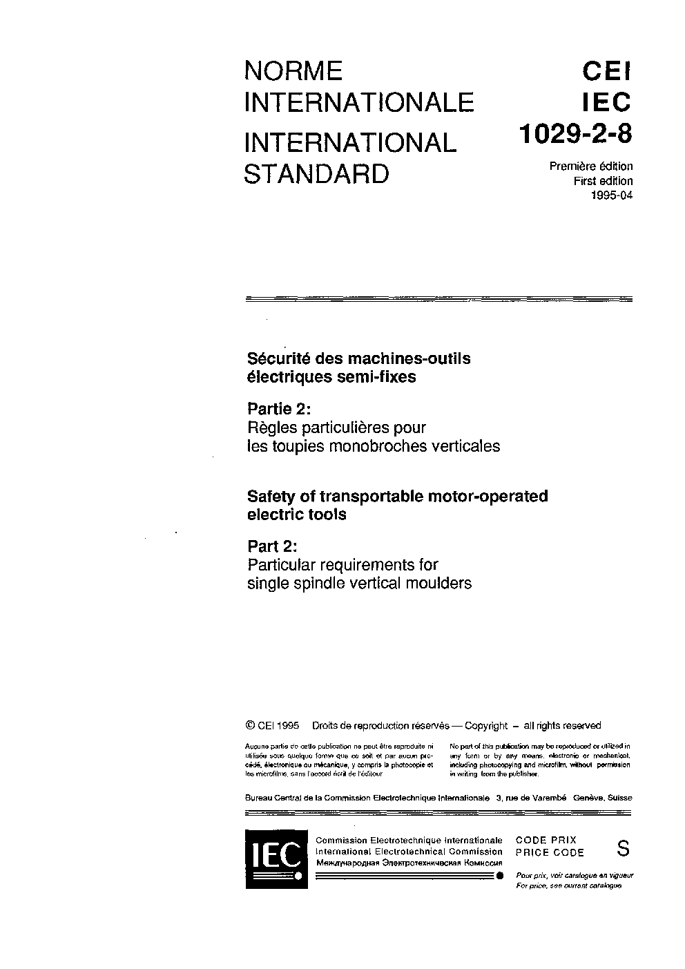 IEC 61029-2-8:1995/AMD1:1999