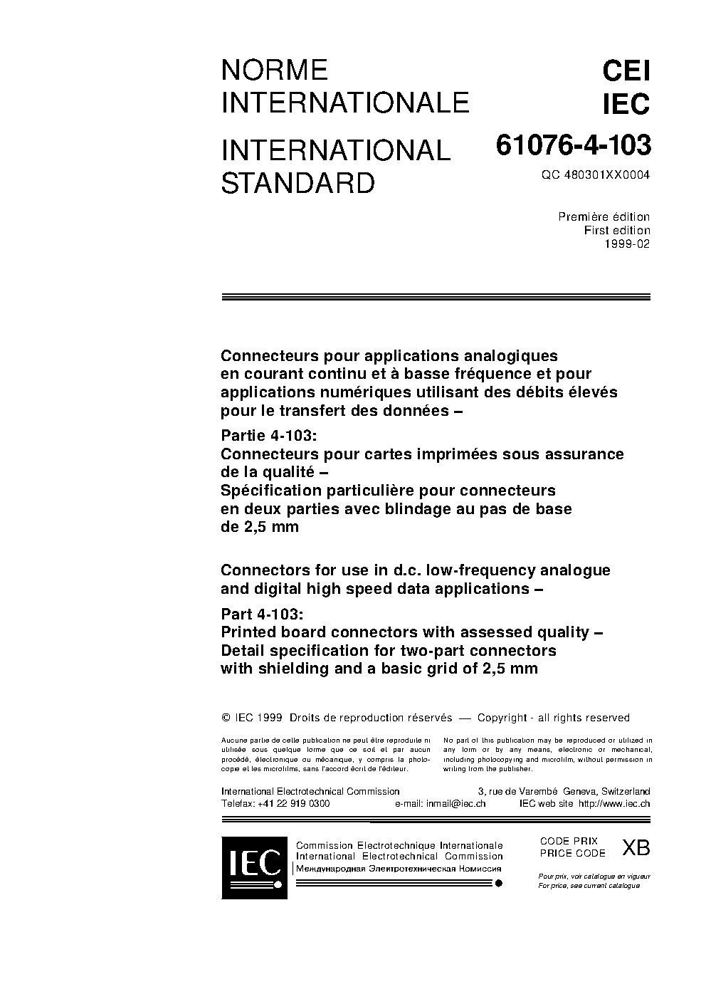 This publication also bears the number QC 480301XX0004 which is the specification number in the IEC Quality Assessment System for Electronic Components (IECQ).