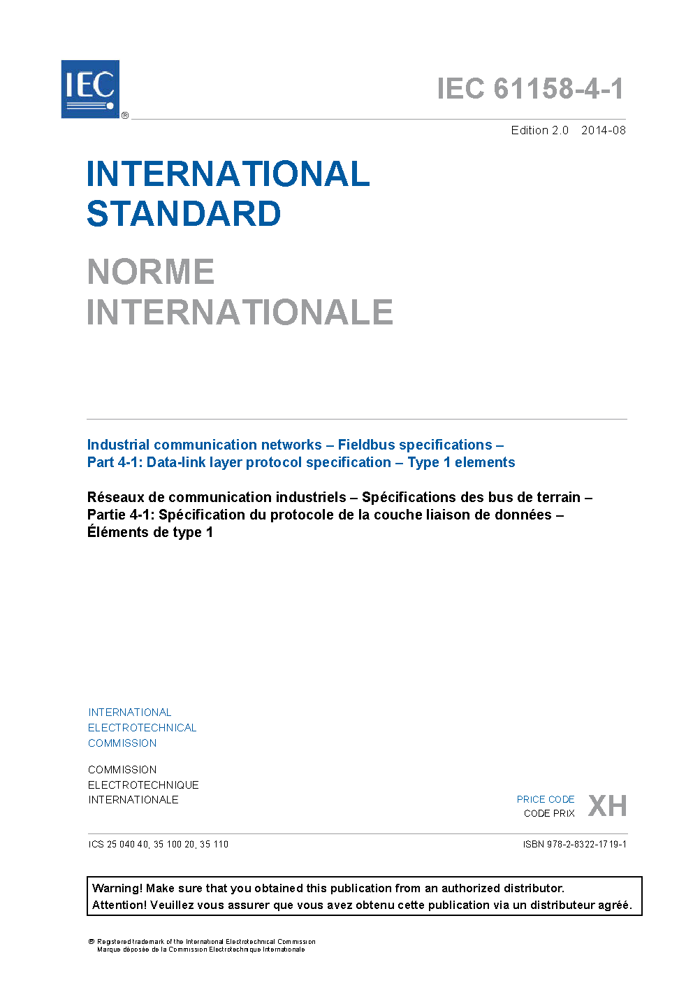 IEC 61158-4-1:2014 Industrial communication networks - Fieldbus specifications - Part 4-1: Data-link layer protocol specification - Type 1 elements
