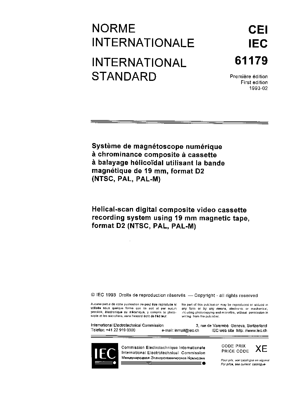 IEC 61179:1993 Helical-scan digital composite video cassette recording system using 19 mm magnetic tape, format D2 (NTSC, PAL, PAL-M)