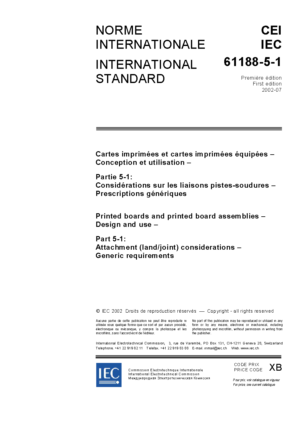 IEC 61188-6-1:2021 specifies the requirements for soldering surfaces on circuit boards. This includes lands and land pattern for surface mounted components and also solderable hole configurations for through-hole mounted components. These requirements are based on the solder joint requirements of the IEC 61191-1, IEC 61191-2, IEC 61191-3 and IEC 61191-4.