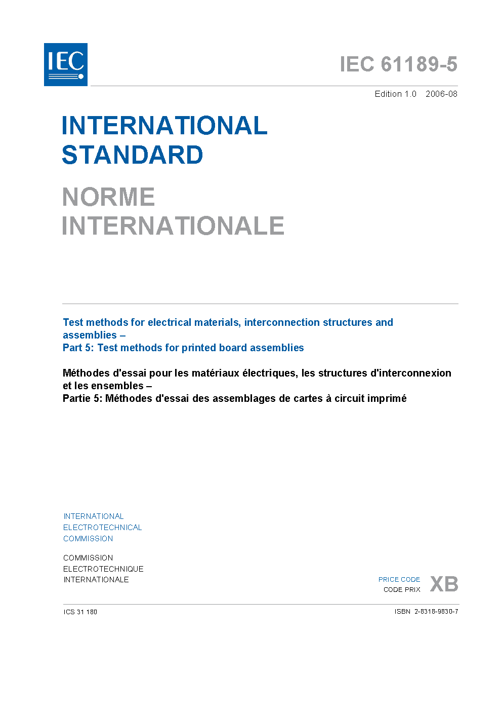 IEC 61189-5:2006 is a catalogue of test methods representing methodologies and procedures that can be applied to test printed board assemblies.