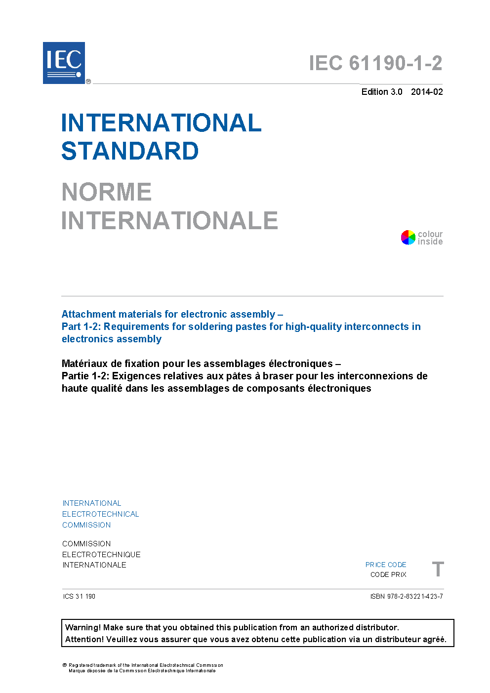 IEC 61190-1-2:2014 Attachment materials for electronic assembly - Part 1-2: Requirements for soldering pastes for high-quality interconnects in electronics assembly