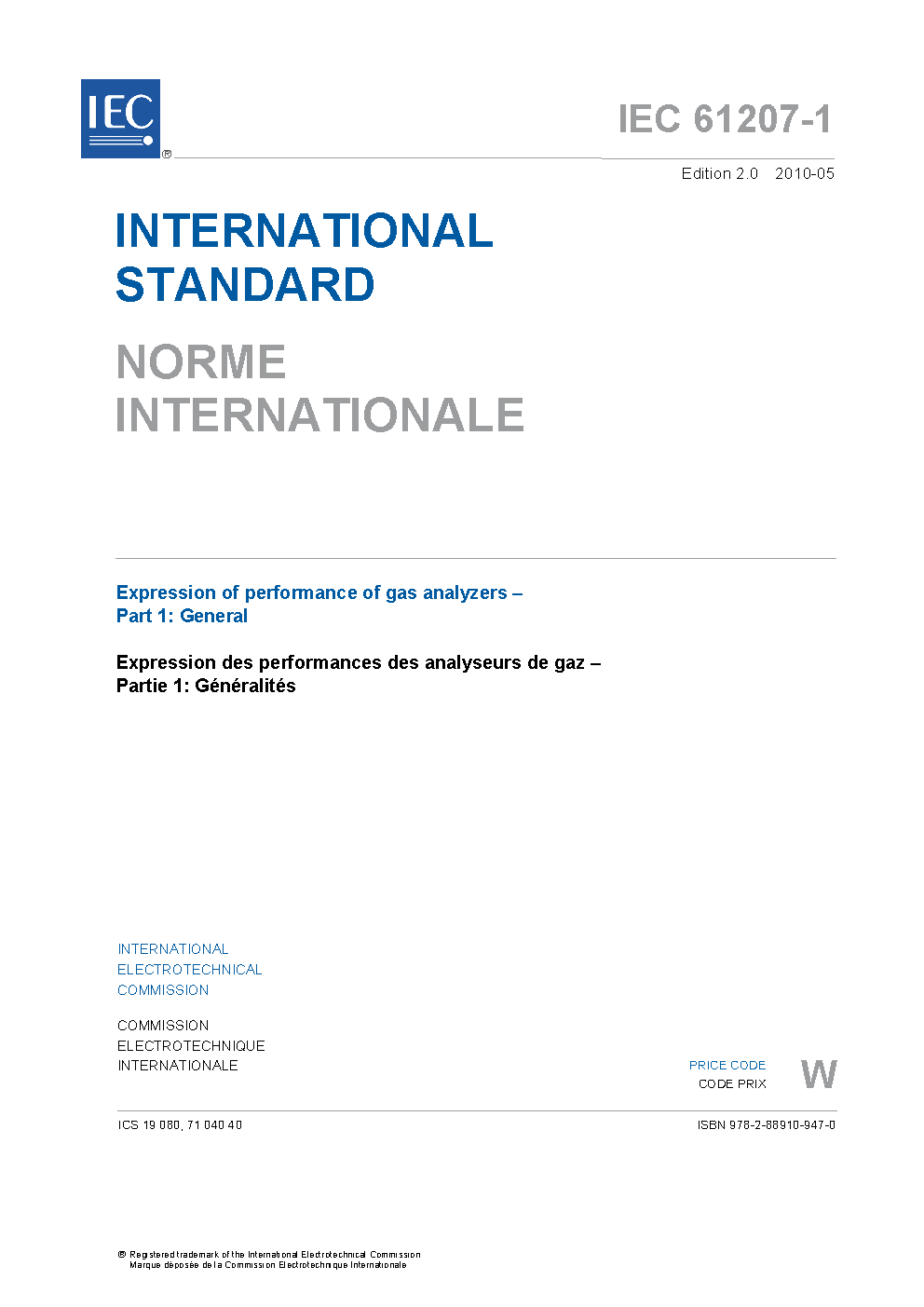IEC 61207-1:2010 Expression of performance of gas analyzers - Part 1: General