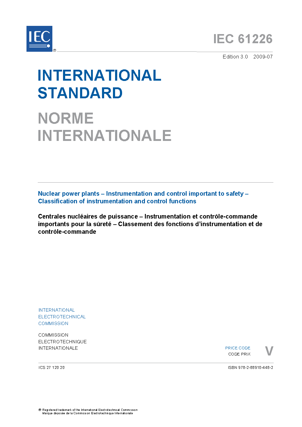 IEC 61226:2020 establishes, for nuclear power plants , a method of assignment of the functions specified for the plant into categories according to their importance to safety. Subsequent classification of the I&C and electrical power systems performing or supporting these functions, based on the assigned category, then determines relevant design criteria.