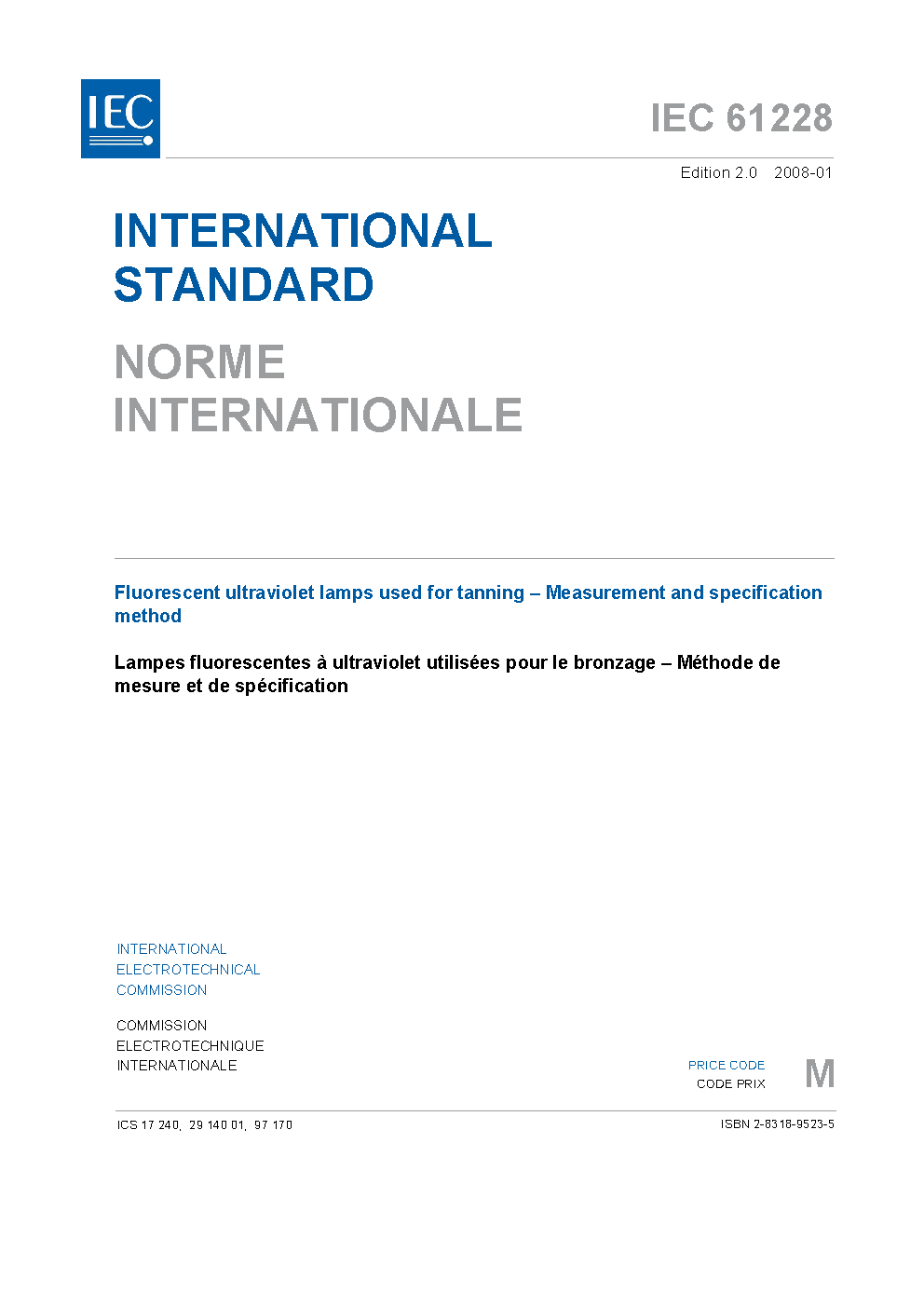IEC 61228:2008 Fluorescent ultraviolet lamps used for tanning - Measurement and specification method
