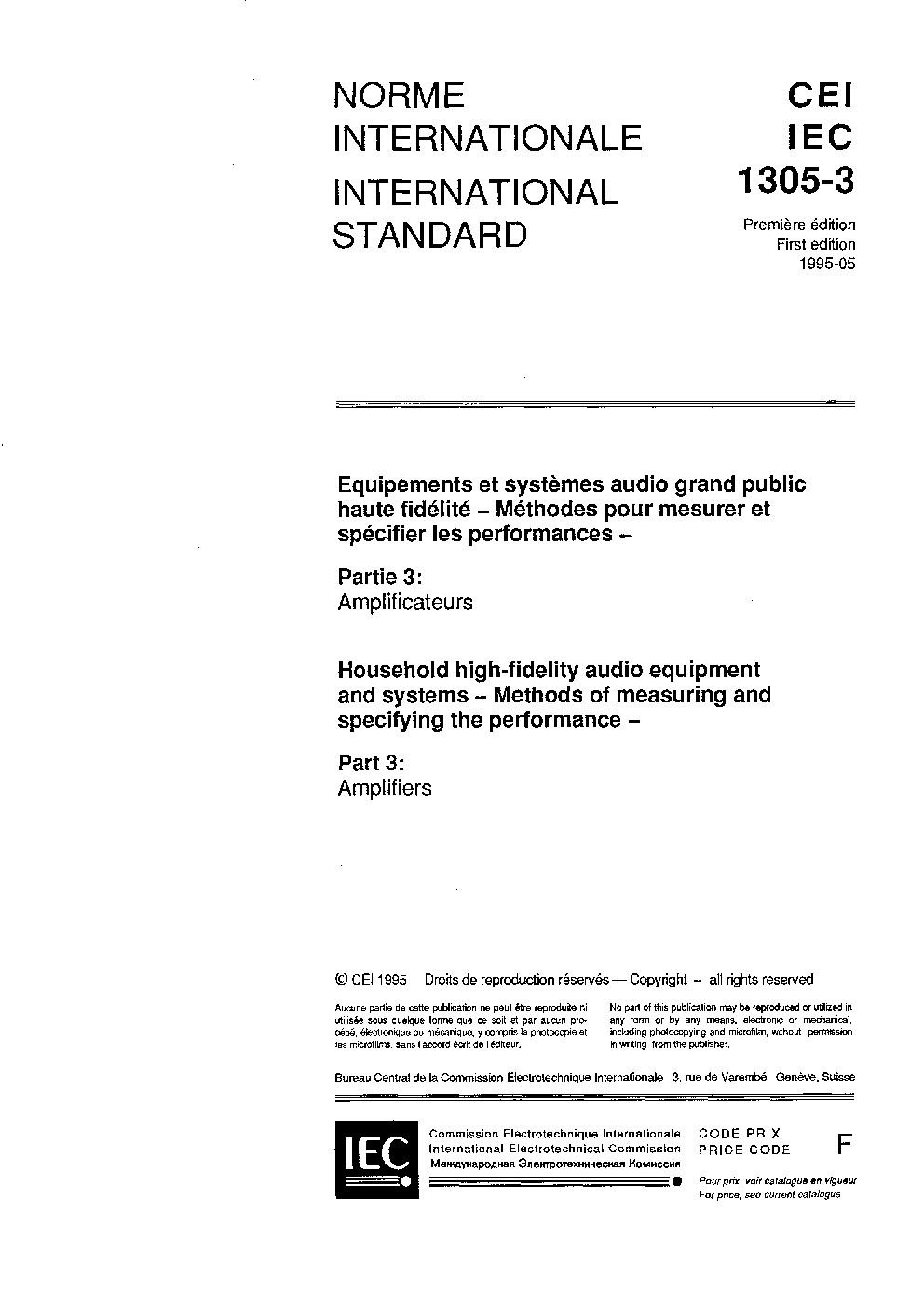 IEC 61305-3:1995 Household high-fidelity audio equipment and systems - Methods ofmeasuring and specifying the performance - Part 3: Amplifiers