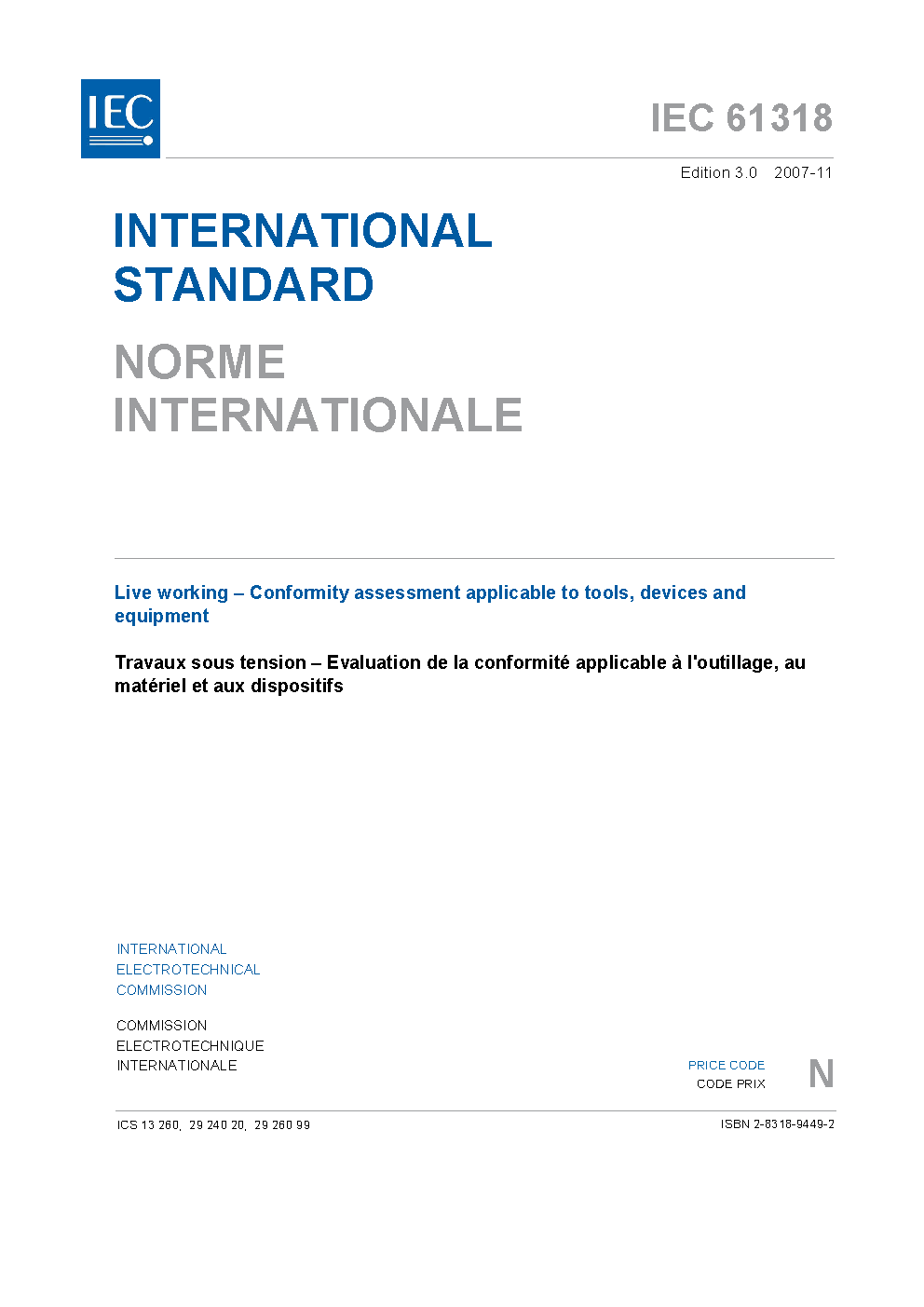 IEC 61318:2007 Live working - Conformity assessment applicable to tools, devices and equipment