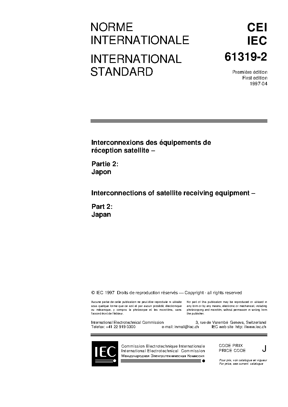 IEC 61319-2:1997 Interconnections of satellite receiving equipment - Part 2: Japan