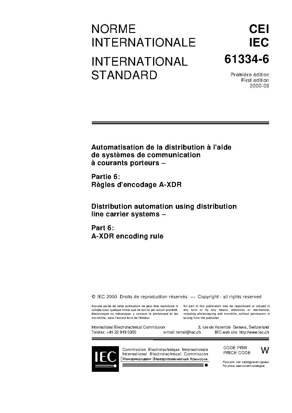 IEC 61334-6:2000 Distribution automation using distribution line carrier systems - Part 6: A-XDR encoding rule