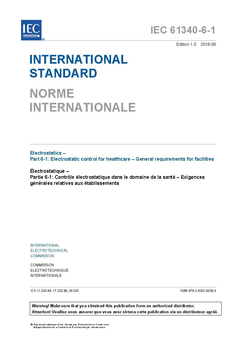 IEC 61340-6-1:2018/AMD1:2024 Amendment 1 - Electrostatics - Part 6-1: Electrostatic control in healthcare, commercial and public facilities - Healthcare