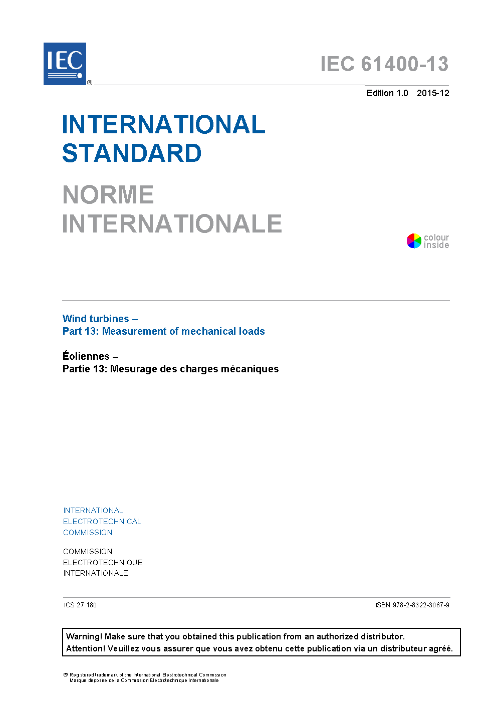 IEC 61400-13:2015/AMD1:2021 Amendment 1 - Wind turbines - Part 13: Measurement of mechanical loads